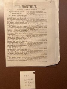Citizens will be able to find photographs of Mvskoke ancestors, speeches, newspaper articles and other community material. The collection also contains many documents in the Mvskoke language, a fact Dellinger emphasized. Dellinger shared that the collection includes original copies of monthly newspapers in the Mvskoke language from Tullahassee Mission as well as written correspondence in the language between Ann Eliza and Mvskoke and Seminole ancestors.