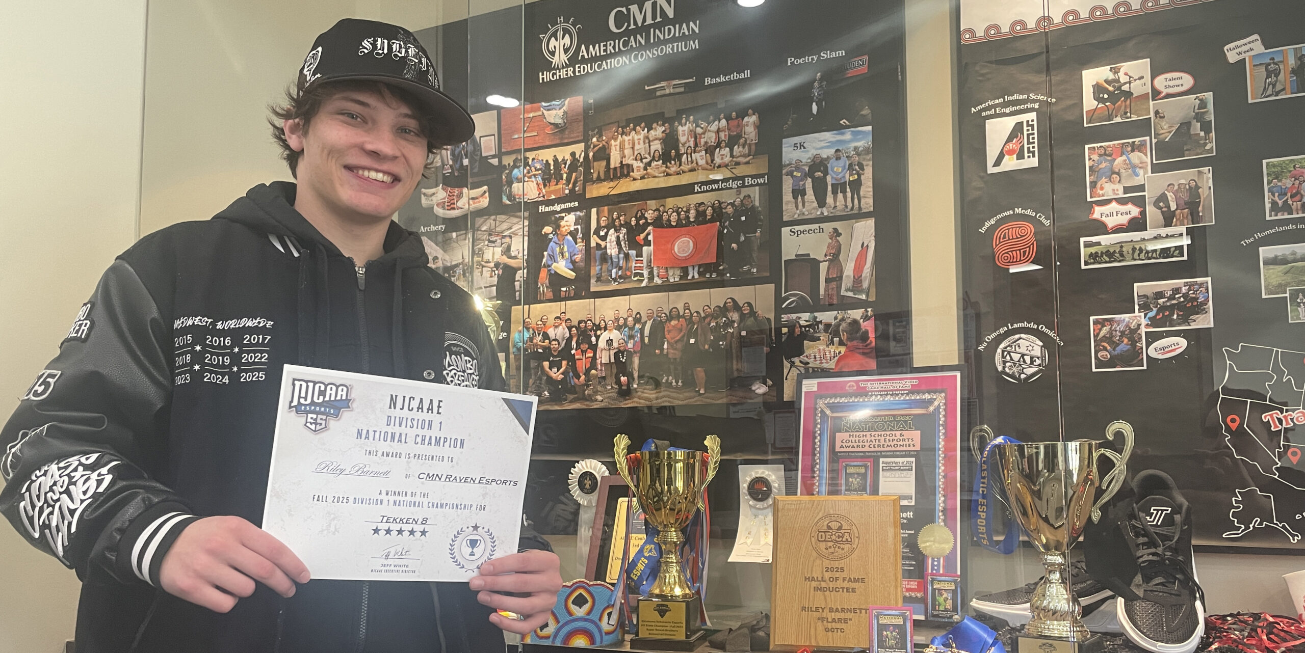 OKMULGEE – College of Muscogee Nation Student Riley Barnett (Mvskoke) and the Ravens esports team made history on Monday, Dec. 8, when they won the D-1 National Junior College Athletic Association (NJCAA) Tekken 8 Championship. The win comes just barely a year after the Ravens esports team joined the NJCAA in September 2024.