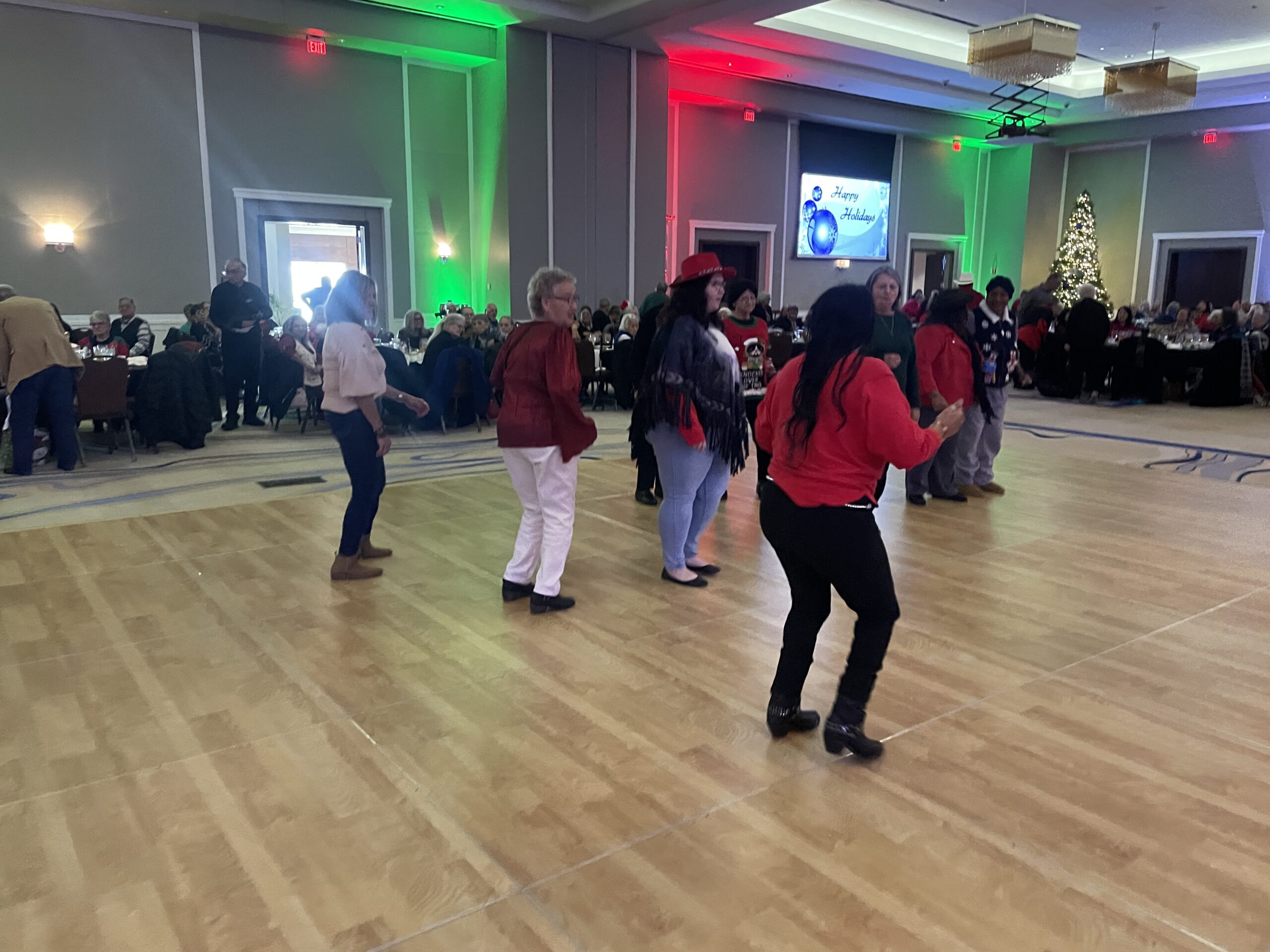 TULSA – Mvskoke elders and loved ones got up and boogied on the dance floor at the annual Elder’s Holiday Luncheon hosted by Muscogee (Creek) Nation Elder Services at the River Spirit Casino on Monday, Dec. 8. Elders from communities on and off the Mvskoke Reservation gathered for fellowship and Christmas fun. Door prizes, including a hand-beaded cane and a hand-sewn skirt were handed out.