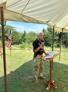 CHECOTAH, Oklv. – The 161st anniversary of the Battle of Honey Springs was commemorated Saturday, July 13 at the Honey Springs Battlefield and Visitor’s Center near Rentiesville. The memorial activities were held on the site’s lawn. The site is operated by the Oklahoma Historical Society and the event was sponsored in collaboration with the Friends of Honey Springs Battlefield, a non-profit that promotes and supports the historical and cultural significance of Honey Springs Battlefield.