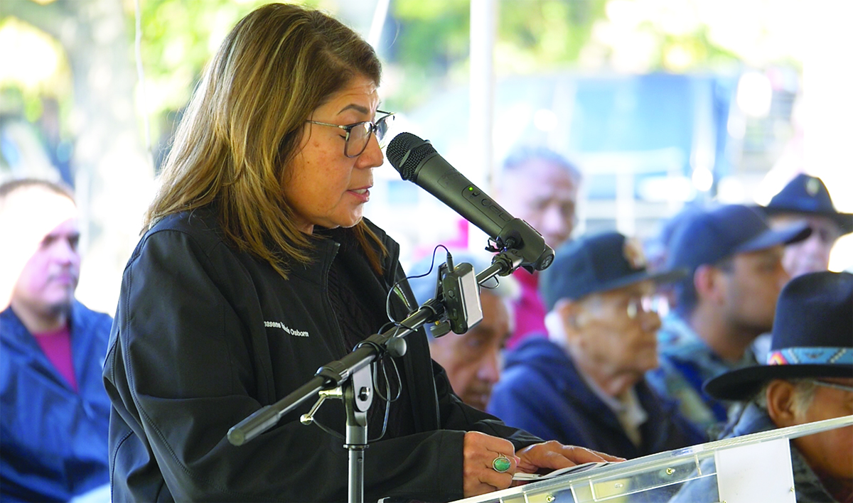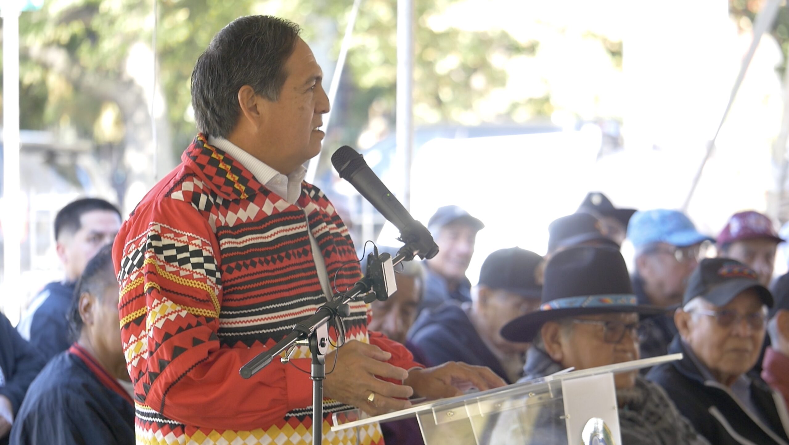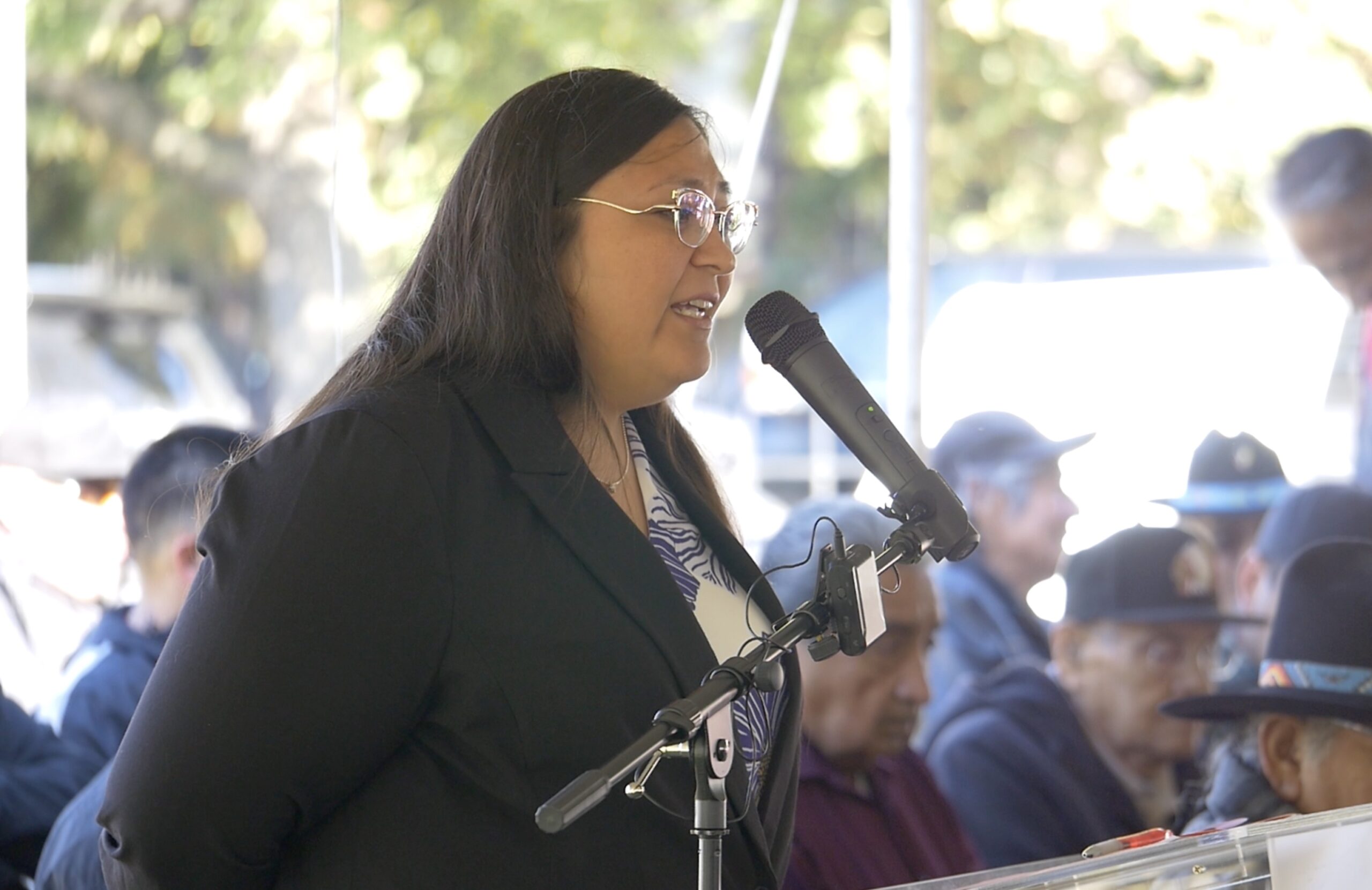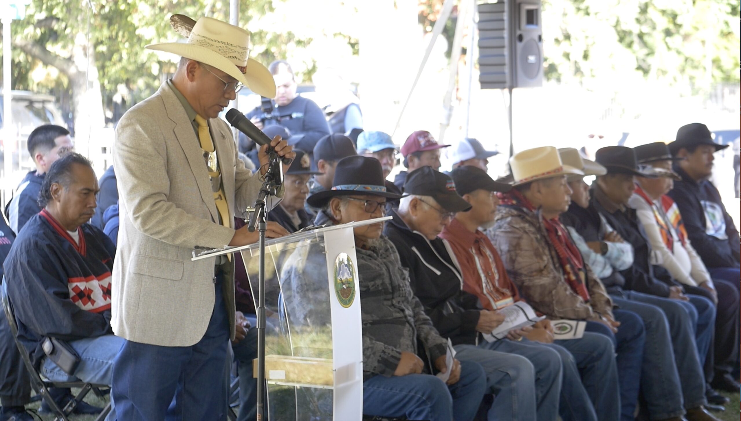 The repatriation was attended by MCN and city leadership, including former Principal Chiefs A.D. Ellis and James Floyd. Muscogee (Creek) Nation National Council Representative Galen Cloud MC’d the event and introduced the Este Cate Hoktvke Suletawv, Mvskoke Women’s Honor Guard, who opened the event. Remarks by Principal Chief David Hill, Second Chief Beaver, and Deputy Mayor Krystal Reyes highlighted the extraordinary history of the tree and the partnership between the city and the MCN. Native actor Moses J. Brings Plenty (Ogalala Lakota) spoke to the crowd, speaking of Native connections across Indian Country. City of Tulsa Director of Tribal Policy Amanda Swope (Mvskoke) shared the commitment the city has in honoring Indigenous traditions and cultures. Swope also read the City of Tulsa proclamation on Native History Month.