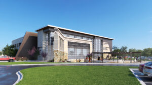 The courthouse’s exterior will feature a large outdoor public seating area with a statue at the center that symbolizes the fires of the Ceremonial Grounds. According to New Fire Native’s website, the fire motif was selected to be reminiscent of areas where council members met and deliberated on unifying decisions. Fire and other Mvskoke cultural motifs will be seen throughout the campus.