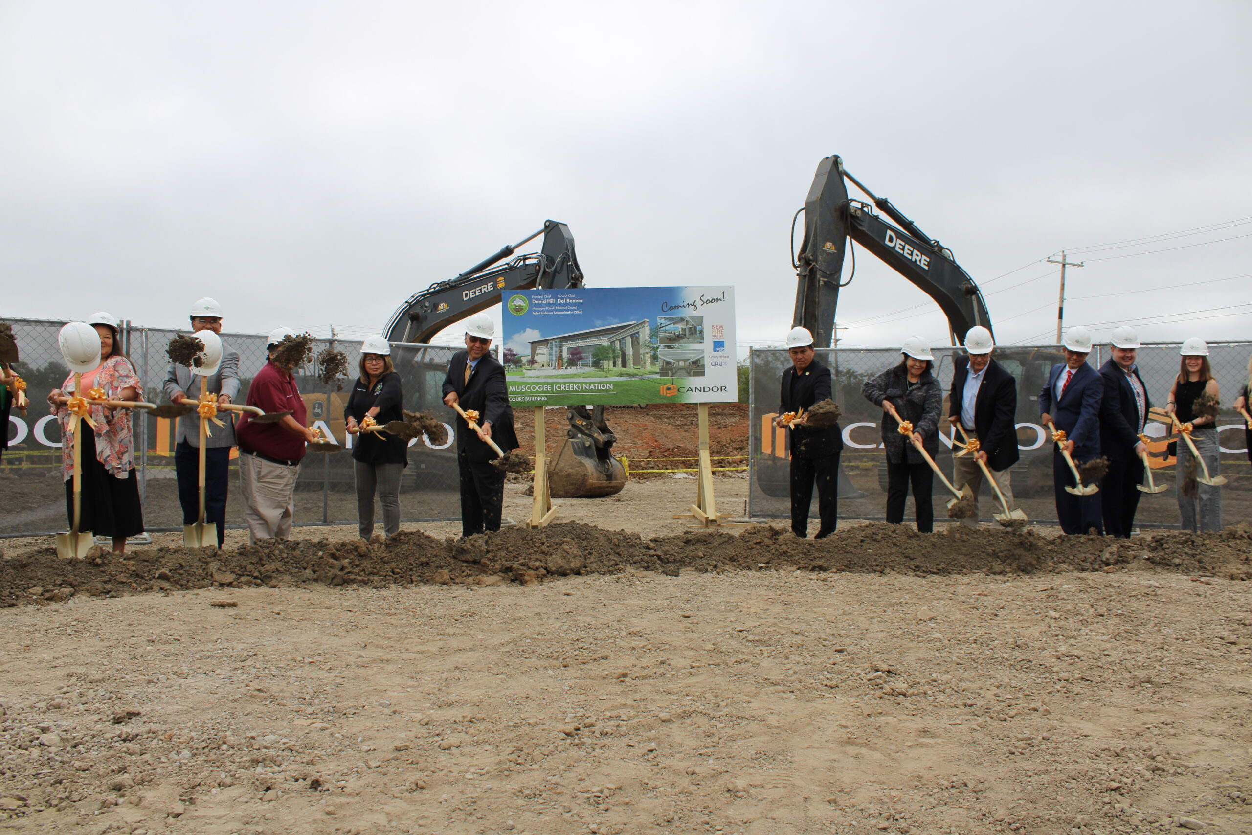 OKMULGEE – On Wednesday, Oct. 8 MCN Tribal leadership officially broke ground on the new Tribal Courthouse on the MCN Tribal Complex. The groundbreaking took place at the courthouse’s new address at 1103 East Eufaula. The 43,514 square-foot structure will sit on the southeast corner of the complex where the Mvskoke Media building was previously located. The groundbreaking comes five years after the McGirt Decision affirmed that the MCN has jurisdictional authority to prosecute Tribal citizens who commit crimes on the MCN Reservation. The project was designed by New Fire Native Design Group and will be constructed by Candor Building Solutions.