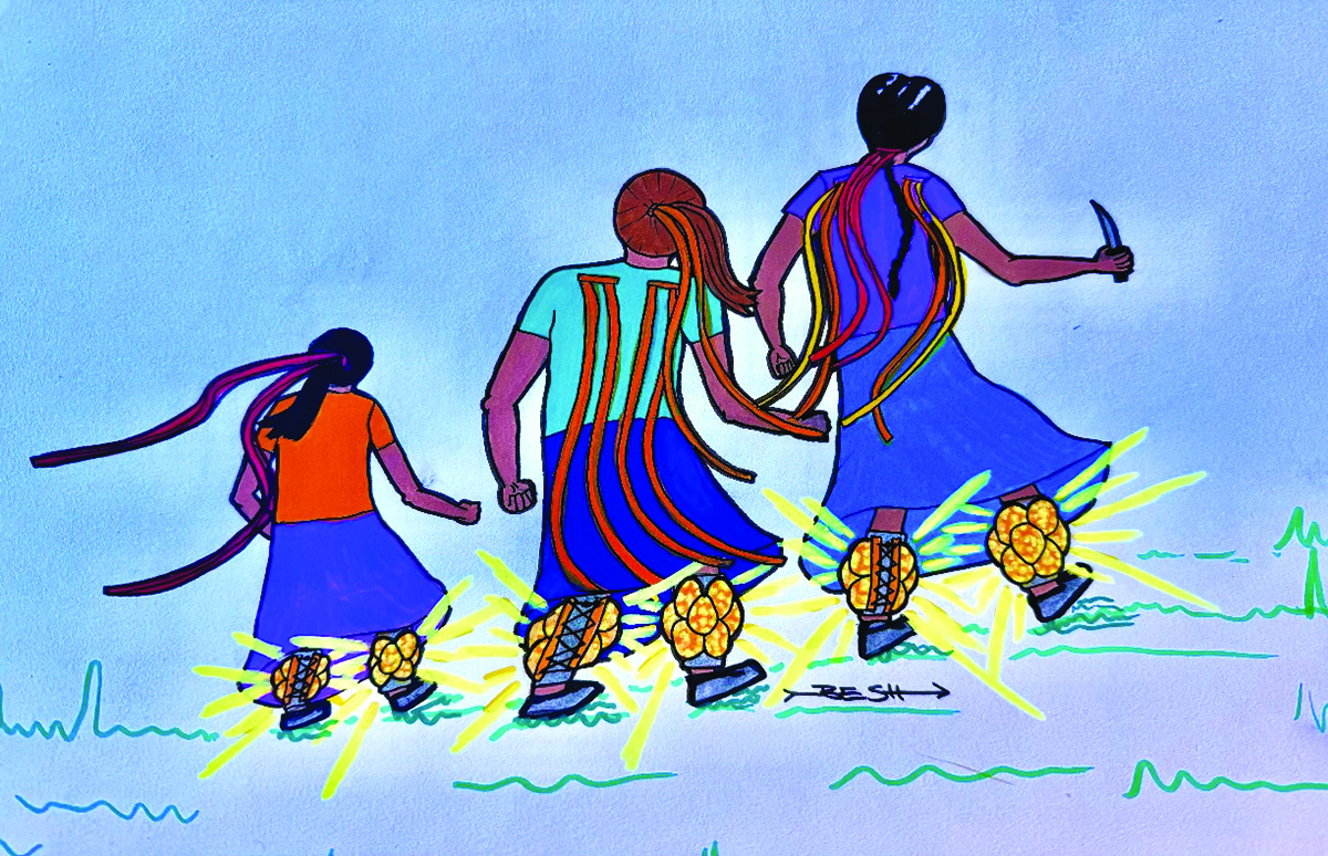 This story always moves me because it manifests signature Mvskoke values and lifeways. Mary threw away the bag of gold and kept her precious turtle shells! The women shake shells at the ceremonial grounds not only to provide rhythm for the songs but also, fundamentally, to commune with Ohfvnkv, The One Above, or Creator. What could be more precious than that?